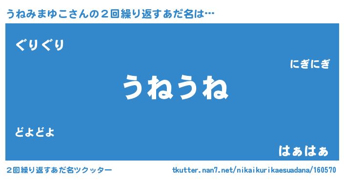 | 可愛いあだ名 | 『うんうん』『うねみまゆこママ』 |