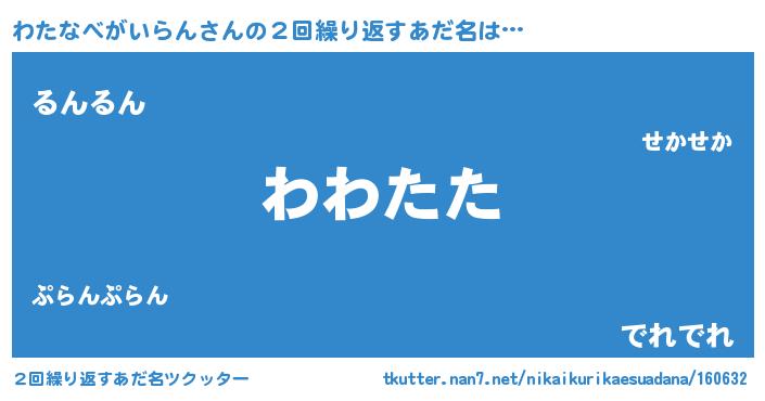 | ポケモン風あだ名 | 『ワタゴンZ』『ワタナダネ』 |