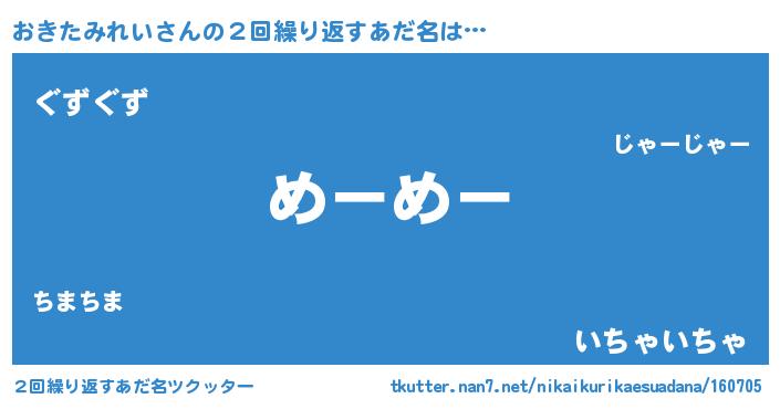 | 意味不明あだ名 | 『自称おきたみれい』 |