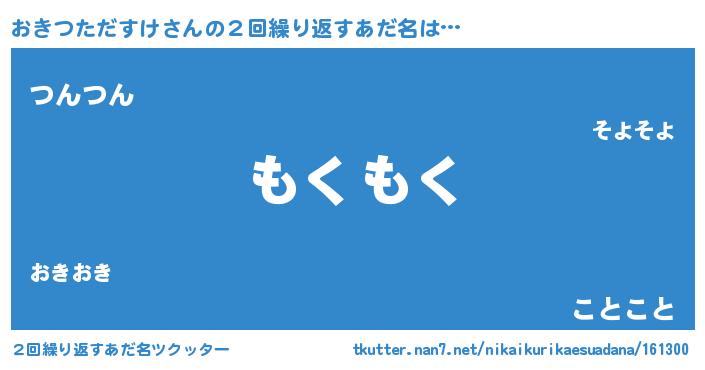 | 男性向けラノベタイトル風あだ名 | 『Re:おきつただすけから始める異世界生活』 |