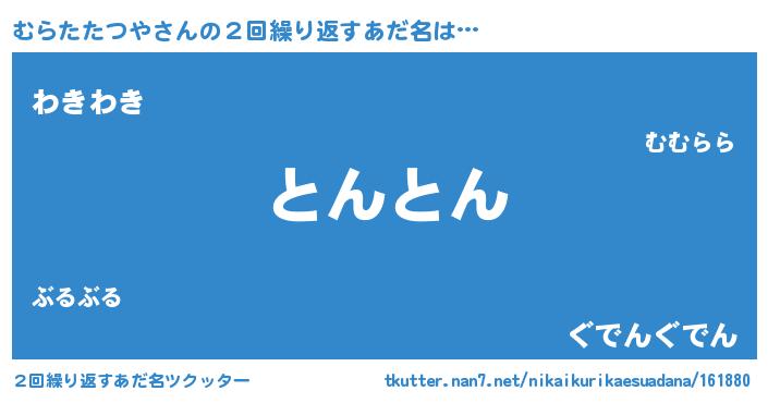 | ヘコむあだ名 | 『むらたたつや(苦笑)』『なまこ酢』 |