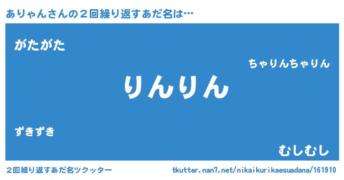 | 料理風あだ名 | 『ありゃんごはん』 |