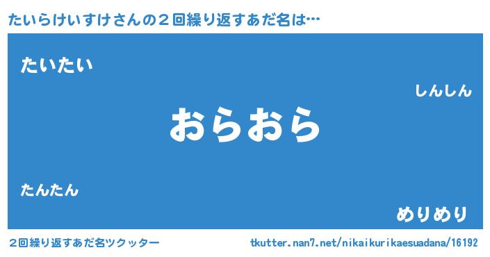 | 意味不明あだ名 | 『とにかく怪しいたいらけいすけ』 |