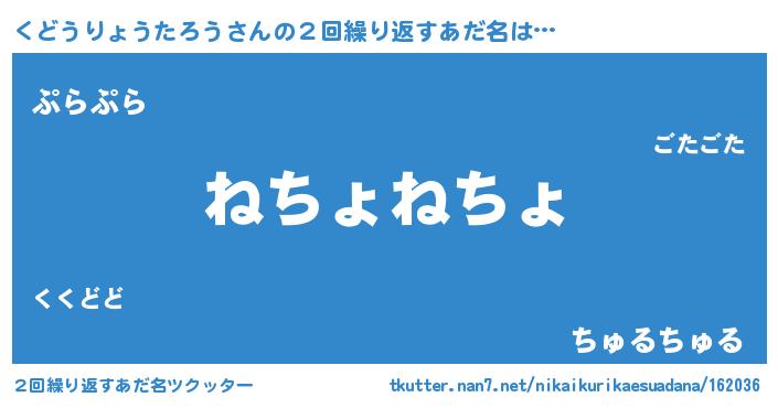| 男性向けラノベタイトル風あだ名 | 『くどうりょうたろうの嫁は女の子じゃないと思った?』 |