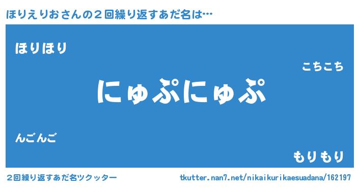 | 男性向けラノベタイトル風あだ名 | 『ほりえりおの嫁は女の子じゃないと思った?』 |