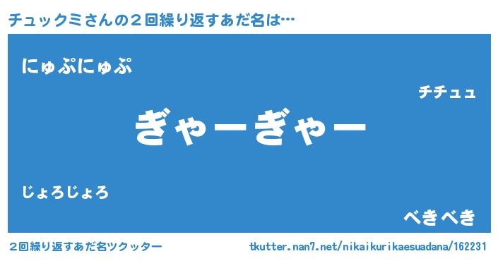 | ヘコむあだ名 | 『チュックミ(苦笑)』『チュぷりん』 |