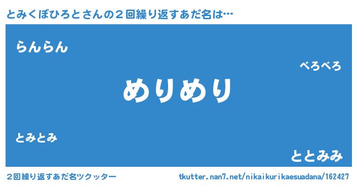 | 男性向けラノベタイトル風あだ名 | 『Re:とみくぼひろとから始める異世界生活』 |