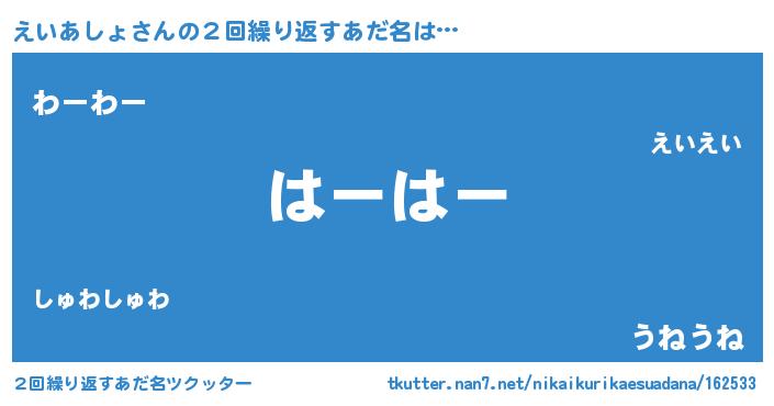 | 欧米人風あだ名 | 『ダニエルえいあしょ』 |