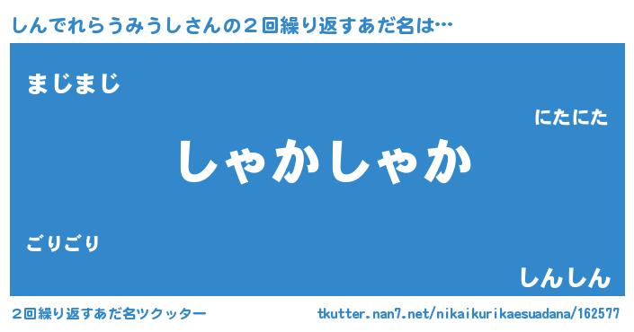 | 意味不明あだ名 | 『住所不定無職しんでれらうみうし(4歳)』 |