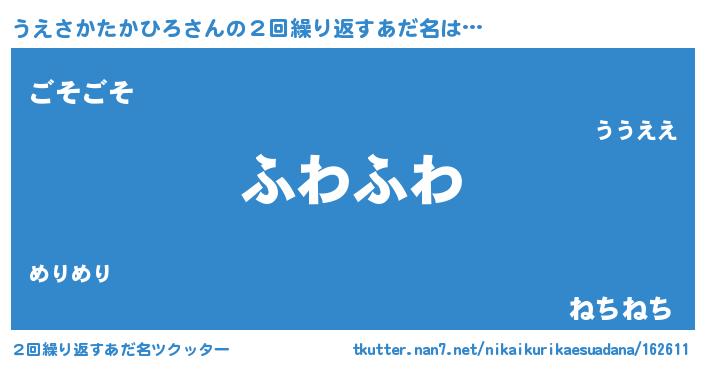 | ヘコむあだ名 | 『うえさかたかひろ(笑)』『うえっ子』 |