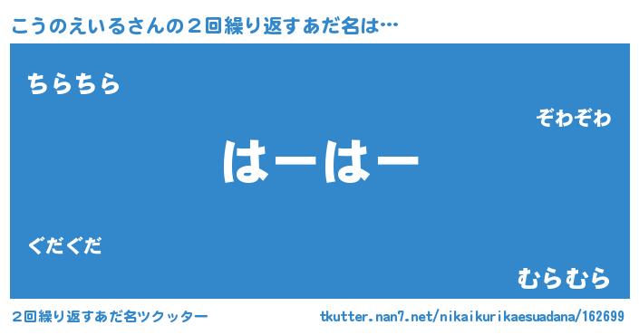 | ヘコむあだ名 | 『こうのえいる(笑)』『豆乳』 |