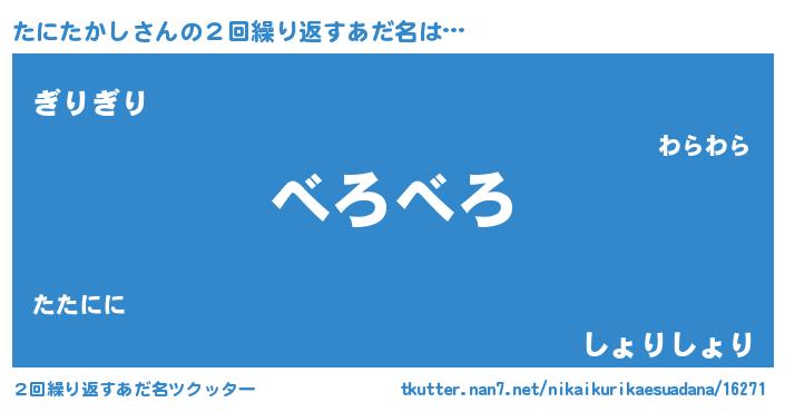 | ヘコむあだ名 | 『たにたかし(笑)』『なまこ酢』 |