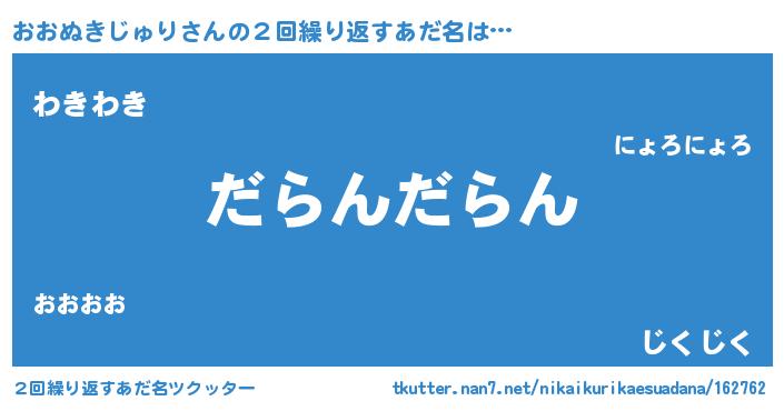| 欧米人風あだ名 | 『おおぬきじゅり・ステッグマイヤー』 |