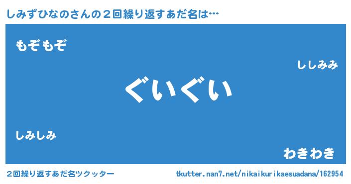 | ヘコむあだ名 | 『しみずひなの(震え声)』『酢こんぶ』 |