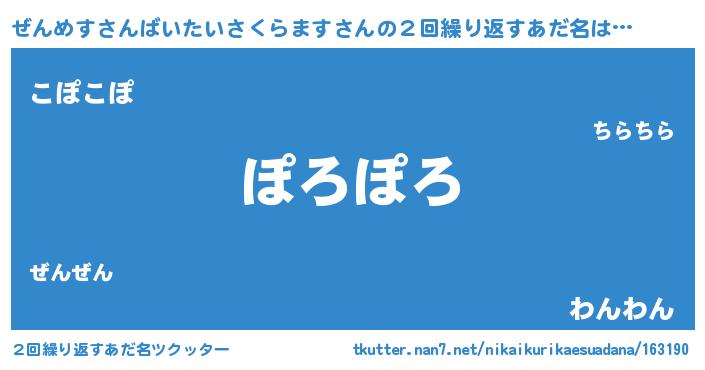 | 欧米人風あだ名 | 『ダニエルぜんめすさんばいたいさくらます』 |