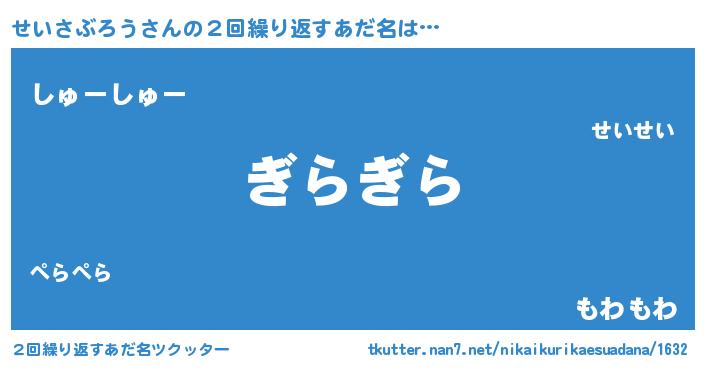 | 意味不明あだ名 | 『永久保存せいさぶろう』 |