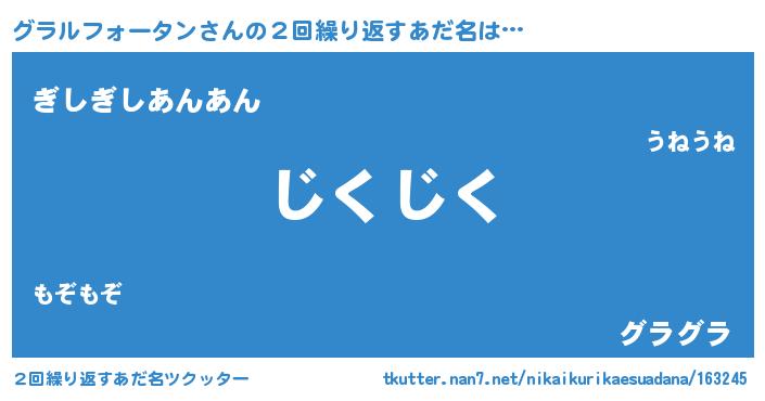 | ヘコむあだ名 | 『グラルフォータン(小並感)』『グラふぇ~』 |