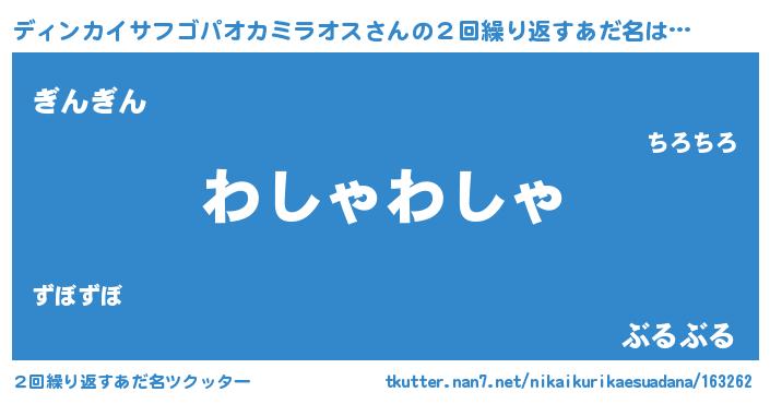 | ヘコむあだ名 | 『ディンカイサフゴパオカミラオス(小並感)』 |