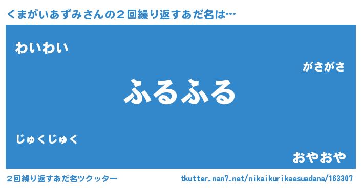 | ヘコむあだ名 | 『くまっぺ』『くまがいあずみ(苦笑)』 |