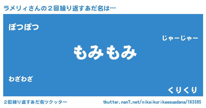 | ヘコむあだ名 | 『ラメリィ(震え声)』『ラメもー』 |