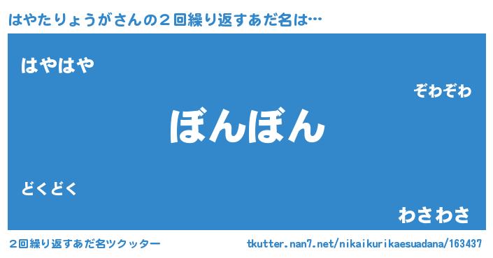 | 男性向けラノベタイトル風あだ名 | 『ノーゲーム・ノーハヤタリョウガ』 |