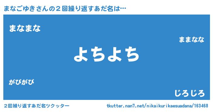 | 胡散臭い通販商品みたいなあだ名 | 『必ず成功するブレスレット…その名も「まなごゆき」』 |