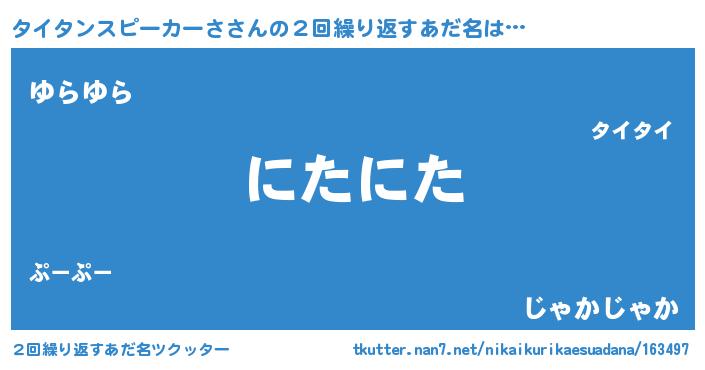 | 女子向けラノベタイトル風あだ名 | 『タイタンスピーカーさの卵を拾いまして』 |
