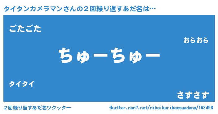 | ヘコむあだ名 | 『タイタンカメラマン(爆)』『タイお』 |