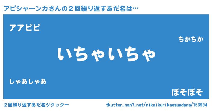 | ポケモン風あだ名 | 『ヒアピシャーンカ』『アピシダネ』 |