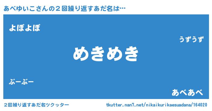 | 意味不明あだ名 | 『自称あべゆいこ』『ペロリンあべゆいこ』 |