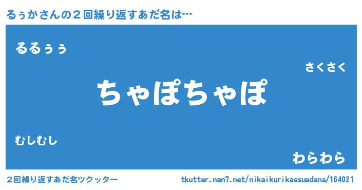 | 欧米人風あだ名 | 『るぅか・ステッグマイヤー』 |