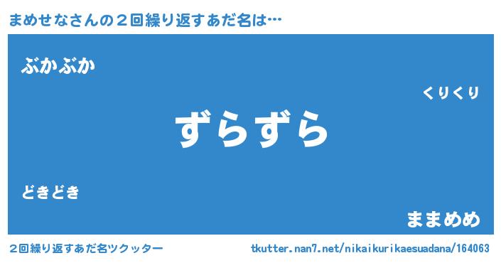 | 意味不明あだ名 | 『住所不定無職まめせな(93歳)』 |