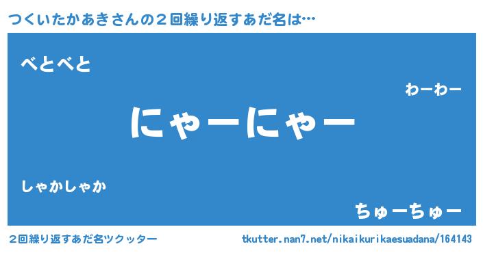 | 男性向けラノベタイトル風あだ名 | 『つくいたかあきの嫁は女の子じゃないと思った?』 |