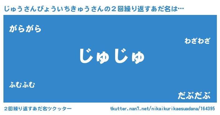 | ヘコむあだ名 | 『じゅにゅー』『つくし』『じゅ太郎』 |