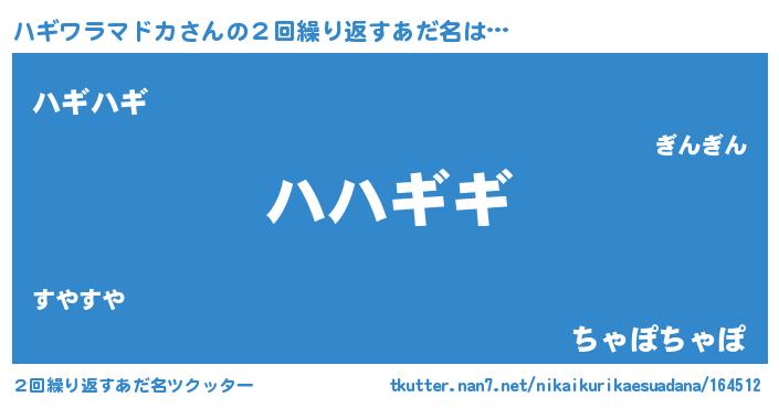 | 欧米人風あだ名 | 『ハギワラマドカクリステル』 |