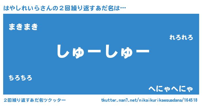 | 意味不明あだ名 | 『住所不定無職はやしれいら(39歳)』 |