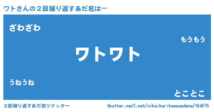 | 意味不明あだ名 | 『ペロリンワト』『住所不定無職ワト(2歳)』 |