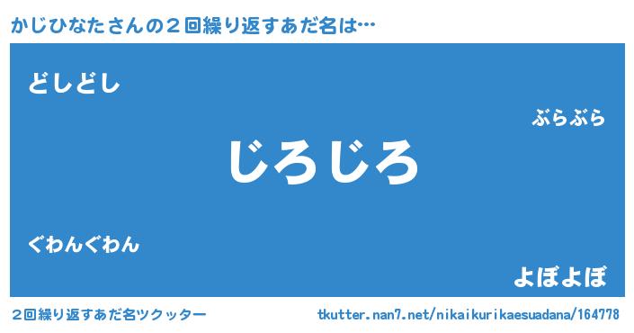 | 意味不明あだ名 | 『住所不定無職かじひなた(79歳)』 |