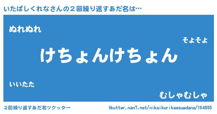 | ヘコむあだ名 | 『いたばしくれな(遠い目)』『いたを』 |