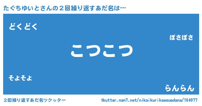| ヘコむあだ名 | 『たぐちゆいと(遠い目)』『たぐふぇ~』 |