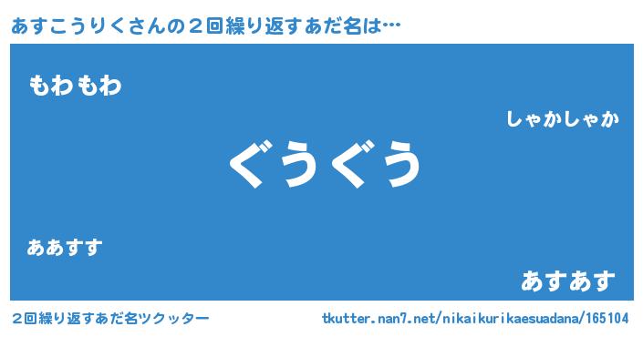 | 意味不明あだ名 | 『永久保存あすこうりく』 |