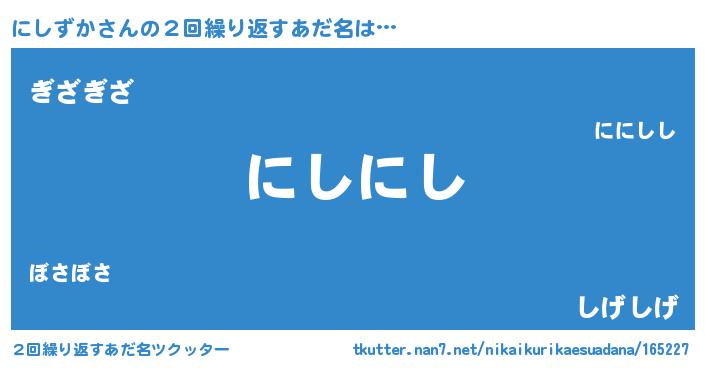 | ポケモン風あだ名 | 『ニシゴンZ』『ニシチュウ』 |