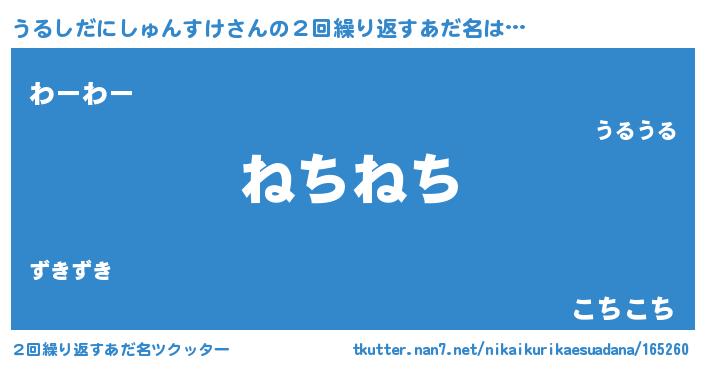 | ヘコむあだ名 | 『うる太郎』『うるしだにしゅんすけ(笑)』 |