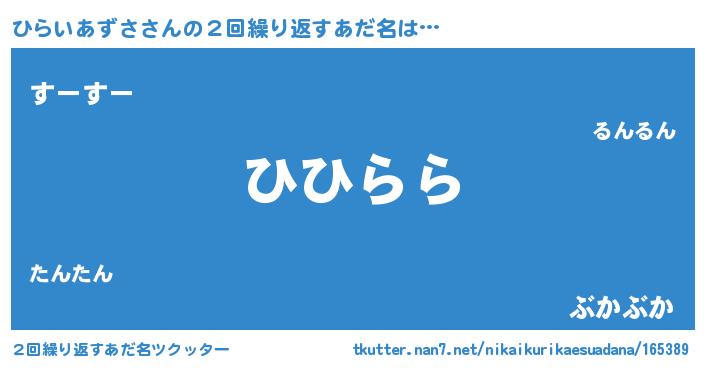 | ヘコむあだ名 | 『なまこ酢』『ひらにー』『ひらっ子』 |