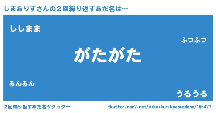 | ヘコむあだ名 | 『しまありす(爆)』『牛乳』 |