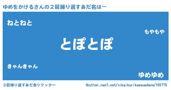 | ポケモン風あだ名 | 『メロユッメ』『ヒユメヲカケル』 |