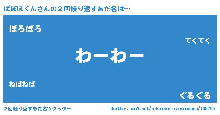 | 意味不明あだ名 | 『なめこ科ばぼぼくん属』 |
