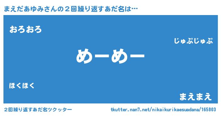 | 意味不明あだ名 | 『自称まえだあゆみ』 |