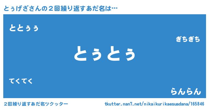 | ポケモン風あだ名 | 『トゥチュウ』『トゥゲダネ』 |