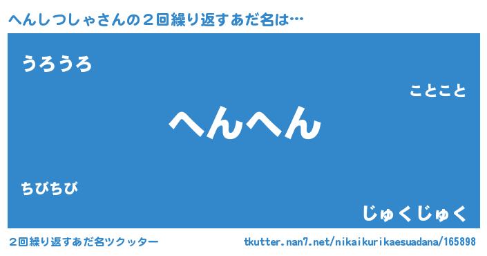 | ポケモン風あだ名 | 『ヘンチュウ』『ヒヘンシツシャ』 |